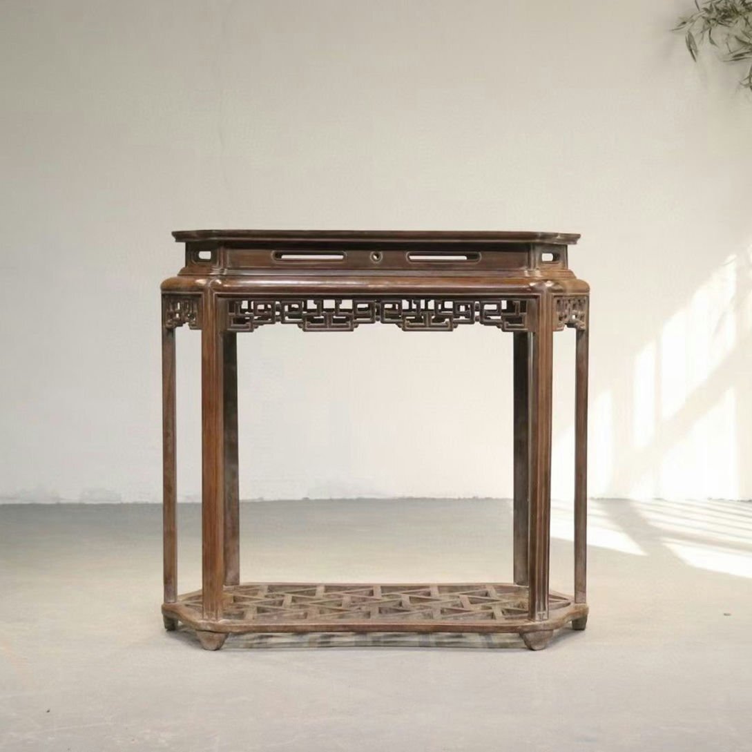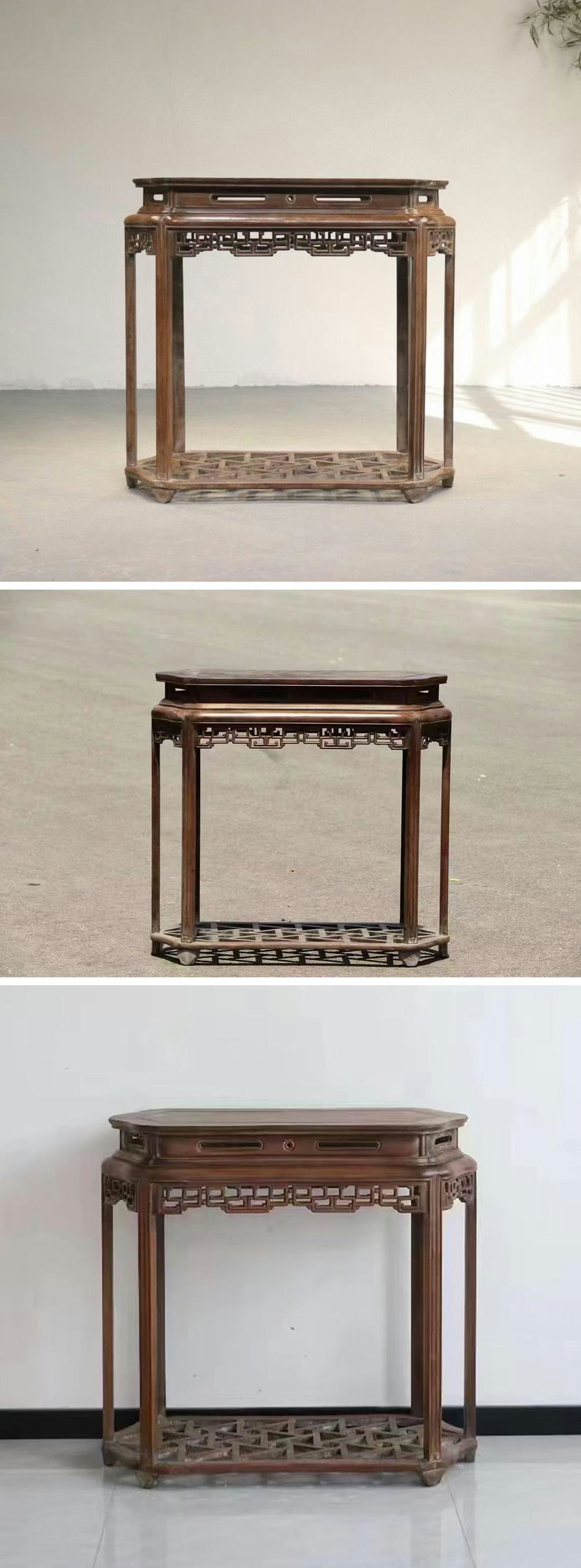 - ■観心・時代旧蔵■H9928清時代 黄花梨 海棠香卓 黄花梨木細密彫 超絶技巧 高手すり 旧蔵家具 珍品旧蔵 古家具