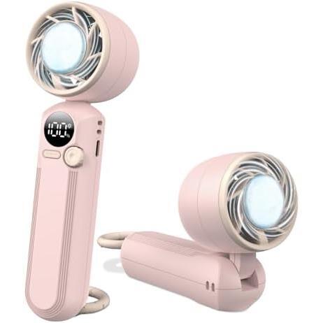 - ピンク ハンディファン 冷却プレート ペルチェ素子 携帯扇風機 1〜100段階無段階風量調整 大容量 静音・強力 ハンディ扇風機 最大12時間使