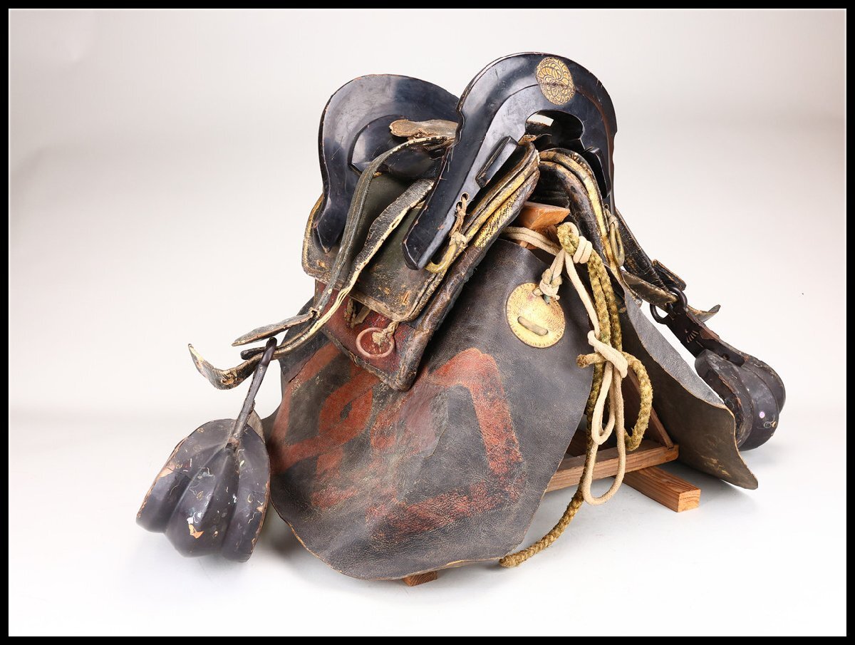 【吉】ZD319 時代 武具 馬具一式 漆芸 家紋付 鞍 鐙/時代のダメージありZR!