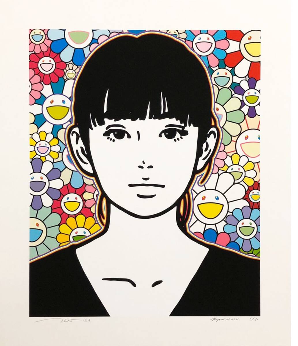 > 【真作】kyne/Untitled:Q シルクスクリーン ※ kyneと村上隆のダブルサイン入り~カイカイキキの展示会と同額装 絵画 油絵