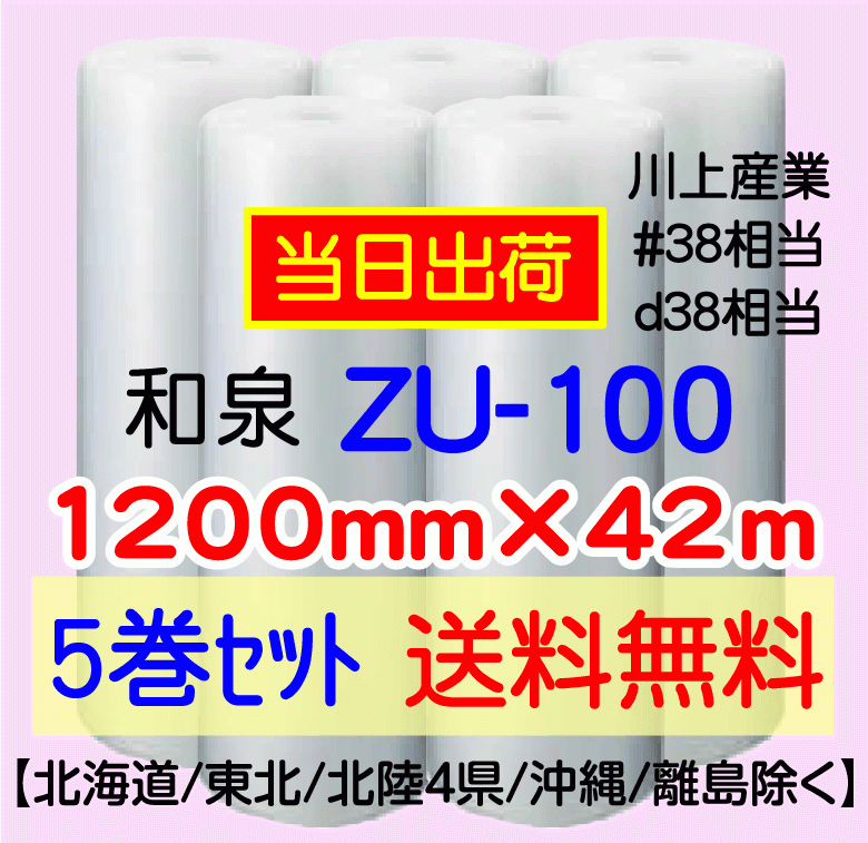- 〔和泉直送 *代引き・夜間お届け不可〕ZU-100 1200mm×42m巻 5巻セット エアパッキン エアキャップ 気泡緩衝材
