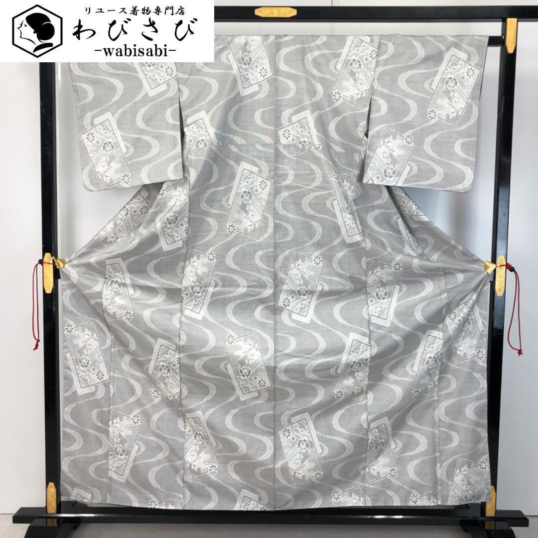 > 本場大島紬 白大島 カタス9マルキ 証紙付 流水に花模様 K-5210 着物 きもの kimono 和服 和装 中古 リサイクル着物 【送料無料】