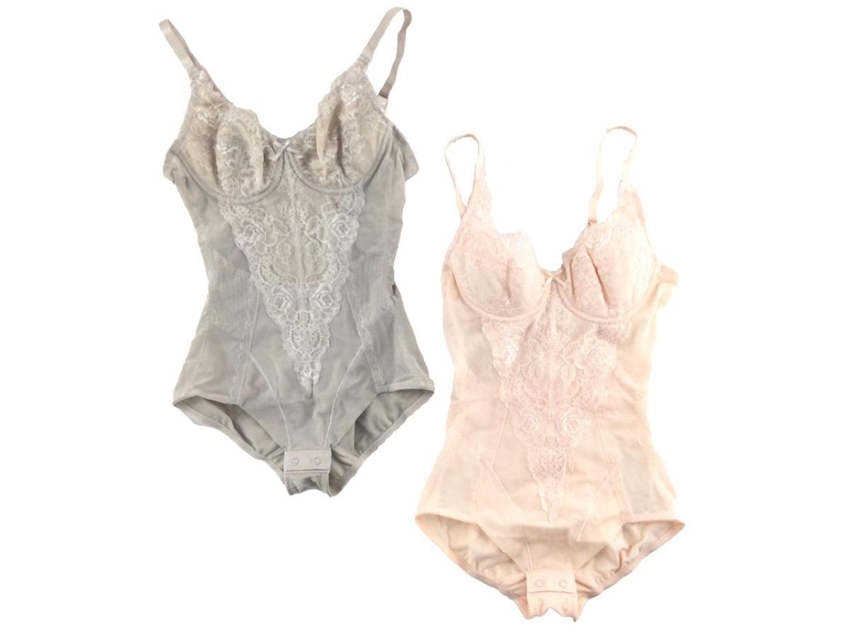 - ボディスーツミディアムタイプ ソフトワイヤー入り 補正下着 2枚組 A70/M グレイッシュブラウン/スカロップシェル