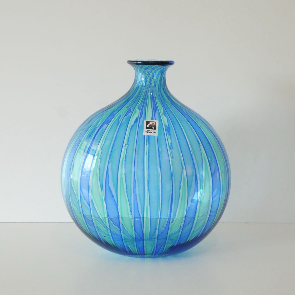 - 月夜野工房 ガラス フラワーベース 箱付き 未使用品 /花器華道ベネチアンムラーノディスプレイオブジェ 青