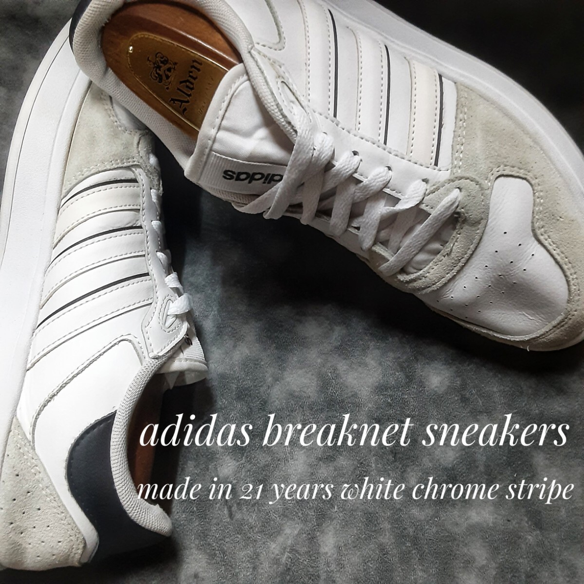> 最値!希少20年製!再販無し!生産終了!エンボスストライプ!アディダス ブレイクネット高級スニーカー!コートスタイル!ホワイト!白黒 26cm
