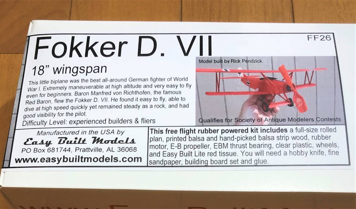 - 【ゴム動力機】Easy Built社製 Fokker D. VII(翼長:18”=457mm)・・・残り2