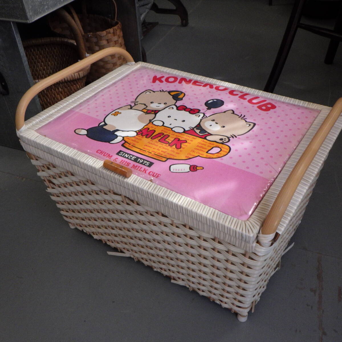 - 昭和 レトロ 蓋付き ビニールバスケット 収納カゴ 白 ホワイト オムツ入れ