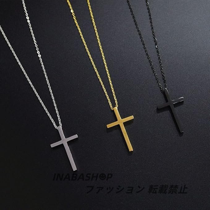 - ネックレス メンズ ブラック シンプル チタンチェーン クロスネックレス レディース 十字架ペンダント 男女兼用 金属 アクセサリー