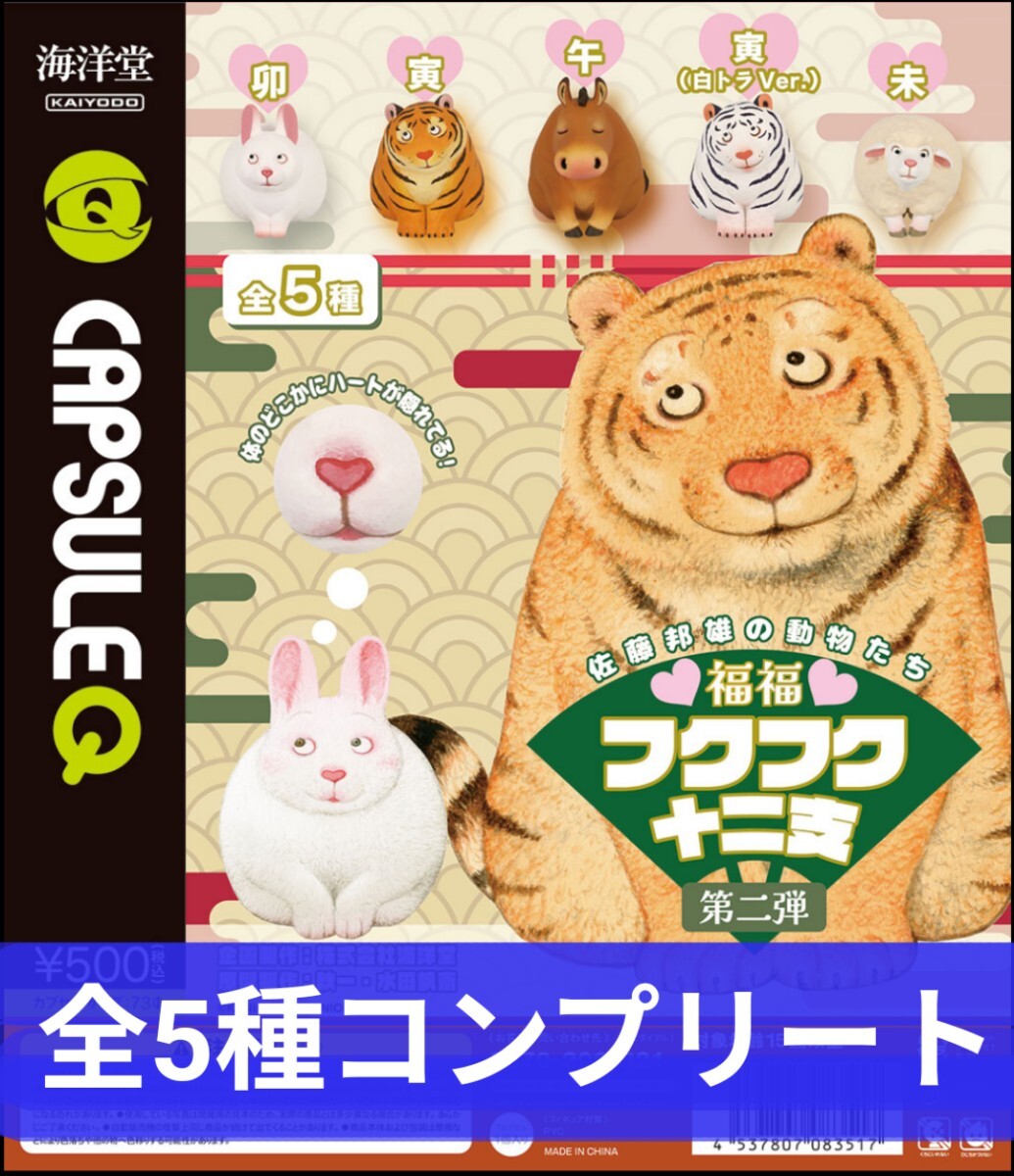 - 海洋堂 カプセルQ 佐藤邦雄の動物たち フクフク十二支 第二弾 全5種 コンプリートセット ガチャ ガシャポン フィギュア 寅、午、卯、未