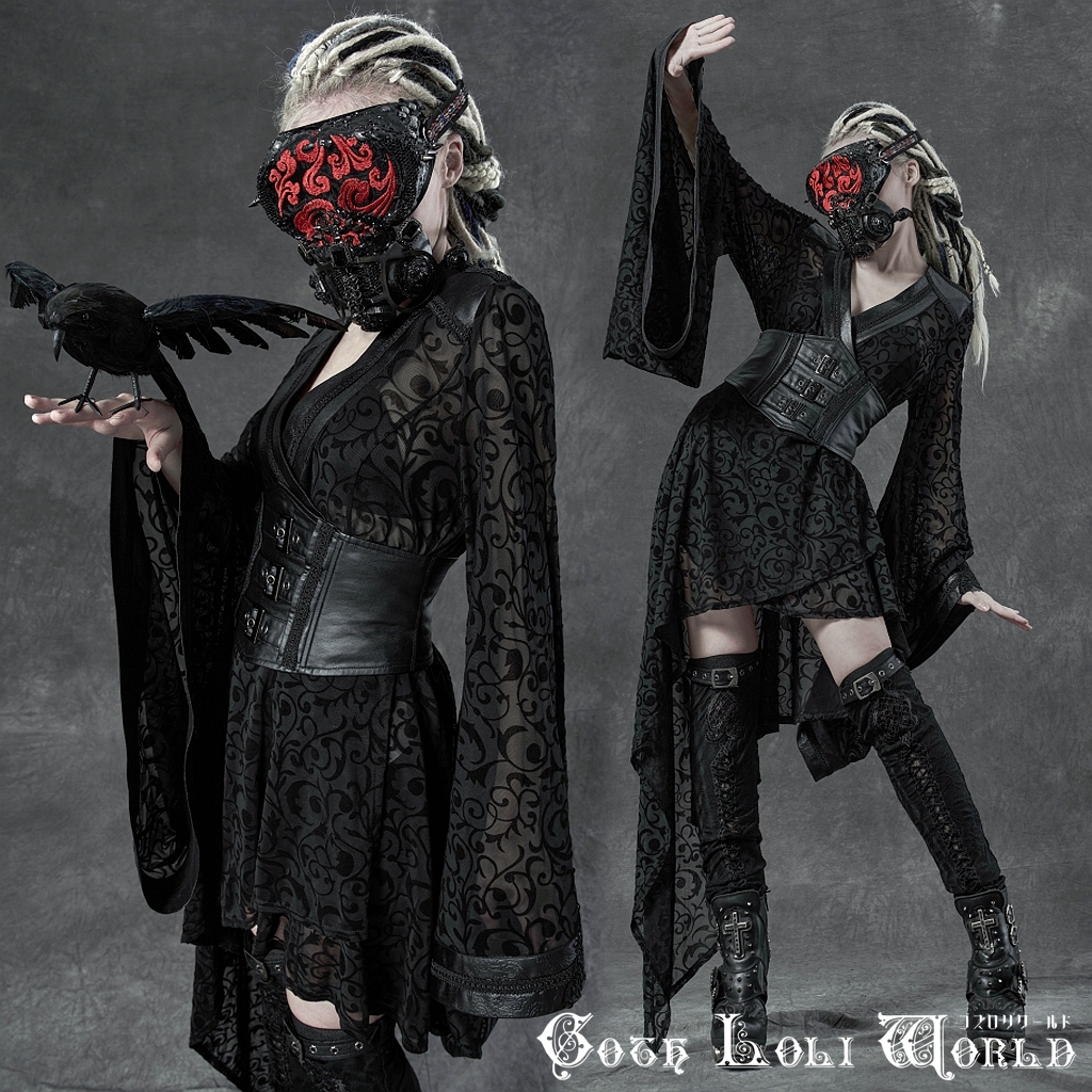 - 即納 WY-1271ZCF-BK-XS-S コルセット付シースルー着物スタイル ワンピース ファッション ゴシック ゴスロリロリィタ ビジュアル系