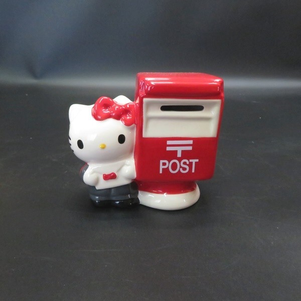 - U13 キティちゃんポスト型貯金箱 約10㎝ 郵便局制服 1976年 サンリオ 昭和レトロ 陶器製 置物 オブジェ 貴重 当時物
