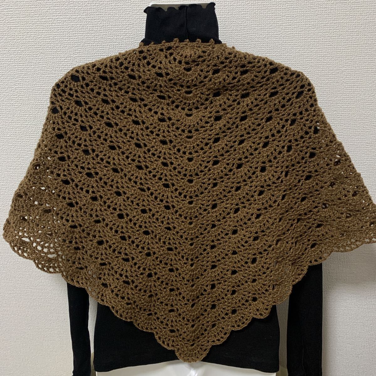 - 【a127】かぎ針 シンプル 透かし シェル編み 三角 ショール ブラウン