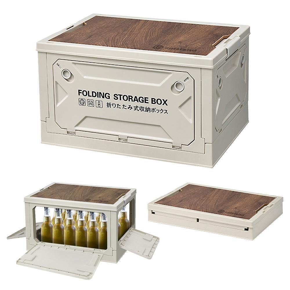 - キャンプ アウトドア 4方向から取り出せる 折り畳み収納ボックス ホワイト