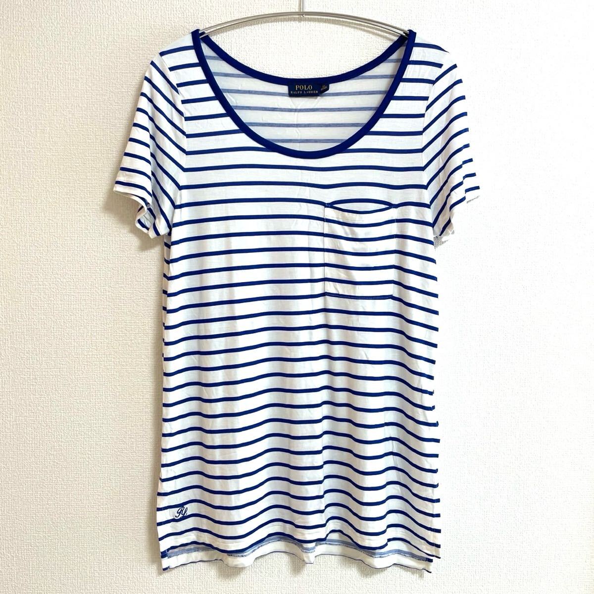 > 【美品】POLO RALPH LAUREN ポロラルフローレン 半袖 Tシャツ レディース XS 155/80A 白 ホワイト ブルー 青 ボーダー カットソー 夏 貴重