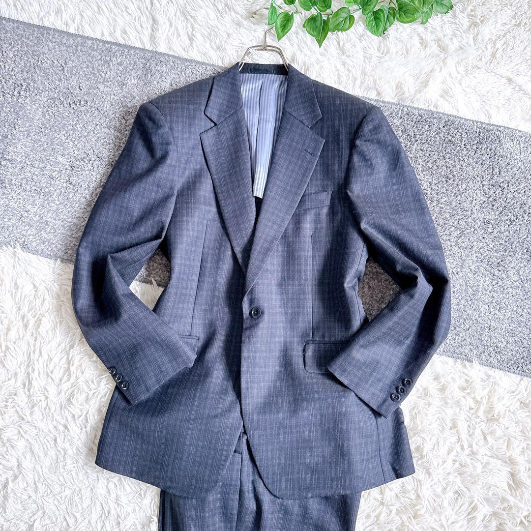 > オールド BALECIAGA バレンシアガ セットアップ スーツ シングルジャケット チェック 1B ネイビー 上下 ヴィンテージ