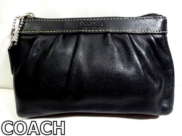 - X5H092◆本物◆ コーチ COACH ブラック 本革レザー ポーチ 小物入れ カード入れ
