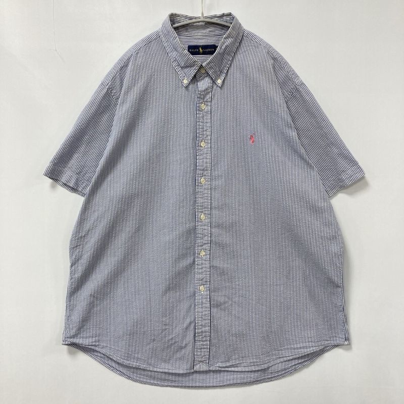 - RALPH LAUREN/ラルフローレン/胸ワンポイント/ポロプレイヤー刺/ストライプ シアサッカー/半袖シャツ/ブルー×ホワイト/XXLサイズ