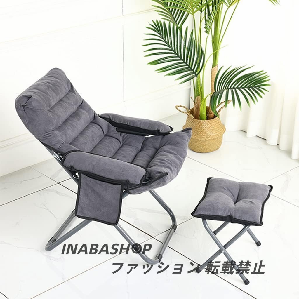 > リクライニングチェア 折りたたみチェア オットマン付き 軽量 3段階調節 仮眠 昼休み アウトドアチェア キャンプ 耐荷重100KG (グレー)