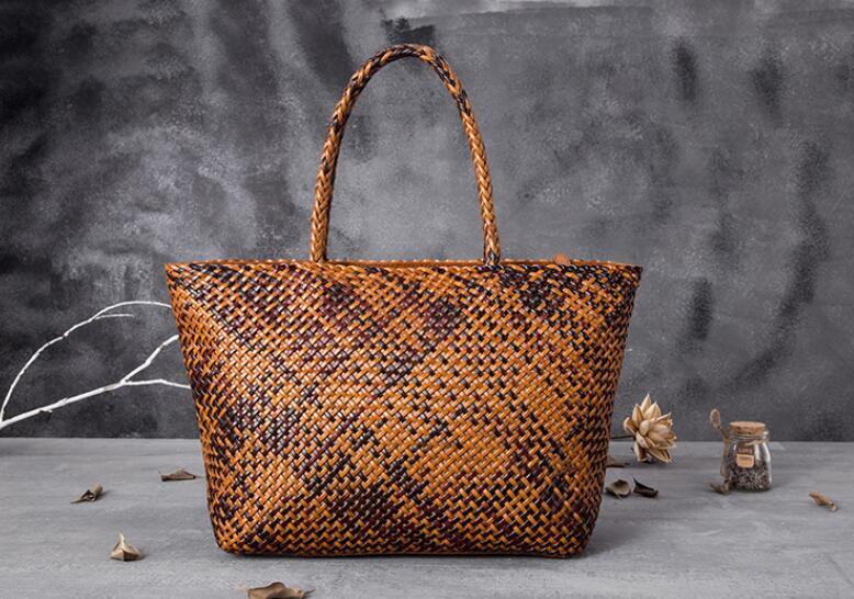 - 新入荷大人気高級 牛革 かごバッグ 籠 /手編み 内布付き レディースバッグ トート 多機能 ハンドバッグ 新品 コーヒー