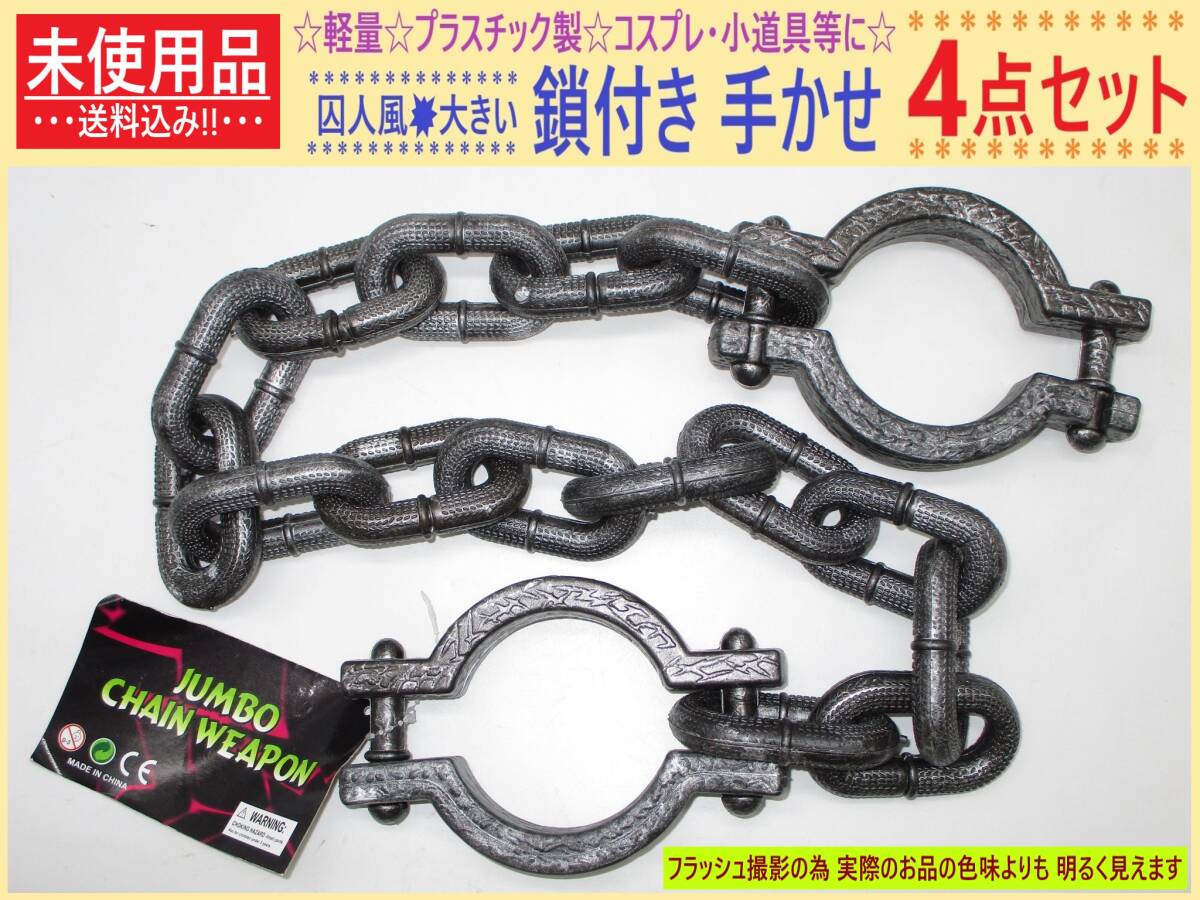 > まとめ売り 未使用 囚人 風 大きい 鎖 付き 手かせ 4点 C プラスチック 軽量 道具 コスプレ イベント チェーン 手錠 長さ 約100cm 海外製