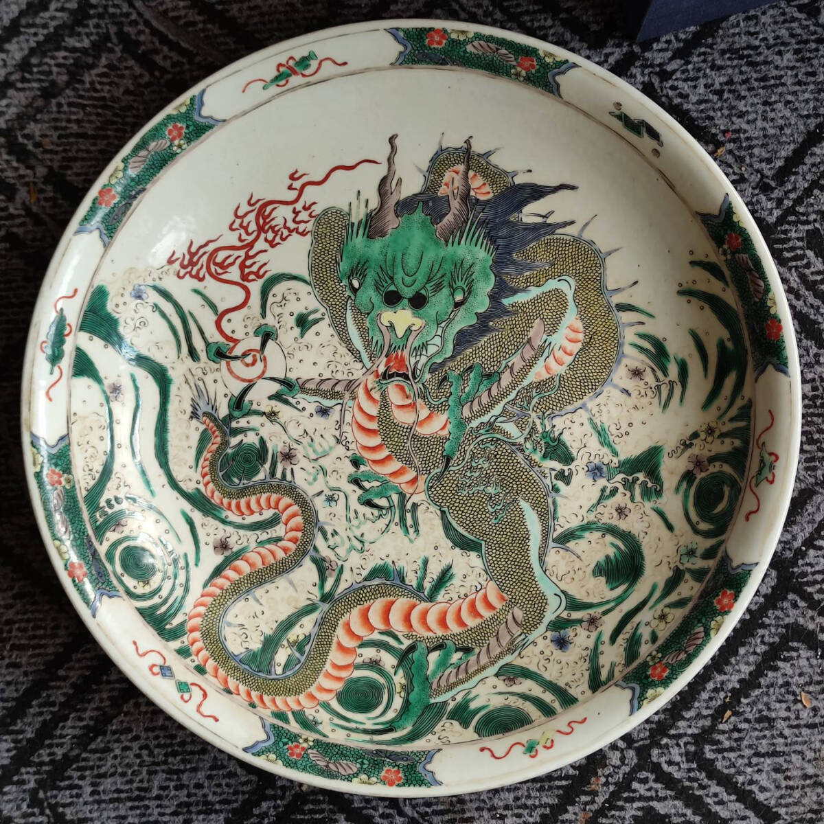 - TM8#7951【3.1】中国骨董 人間国宝 磁器【大清康熙年制竜紋大盤】工芸品 施釉陶 青花磁 陶芸 精美彫 置物 收藏品