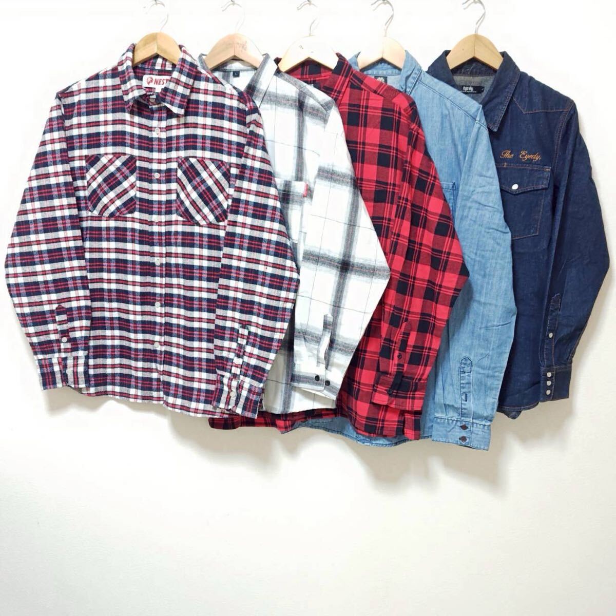 > お得!!【まとめ売り】長袖 シャツ 5着 セット NESTA ネスタ ELEMENT エレメント ILL'S ネルシャツ デニム ストリート アメカジ L /Y36058ji