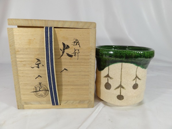 - 6Wh/4-4 楽焼 吉村楽入 作 織部 火入 茶道具 喫煙具 共箱