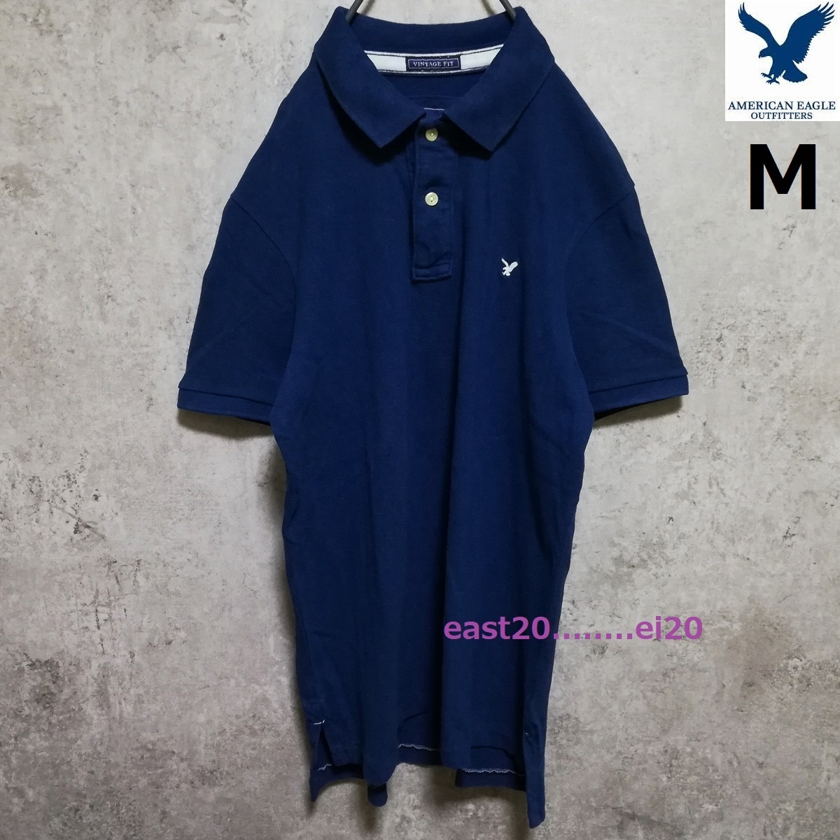 > AMERICAN EAGLE アメリカンイーグル イーグル 刺繍 ヴィンテージ フィット メンズ 半袖 ポロシャツ M 紺 アメカジ Y2K 00s 即決 送料無料