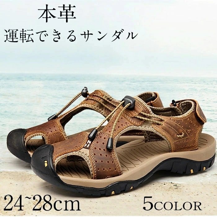 - サンダル メンズ アウトドア スリッパ 本革 滑り止め 通気 シンプル レザー 旅行 登山 大きいサイズ 24-28cm☆5色選択/1点