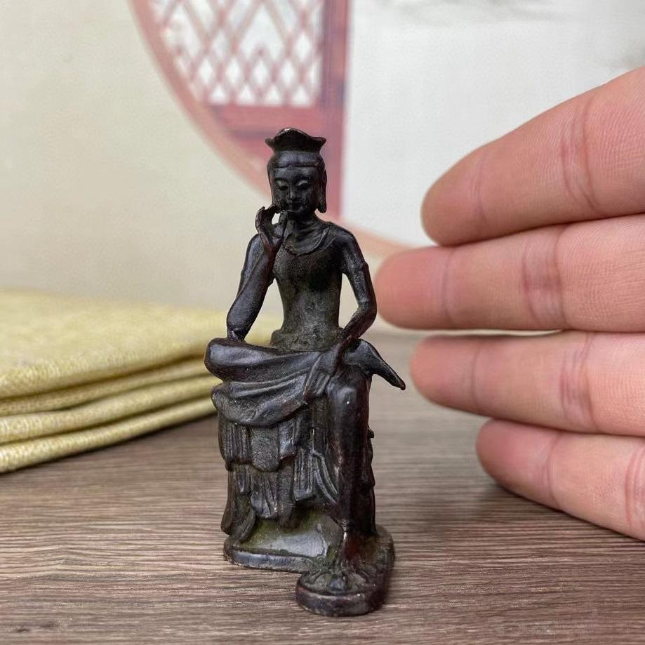 - 弥勒菩薩 銅像 ミニ仏像 仏教 お守り 全高約6.5cm