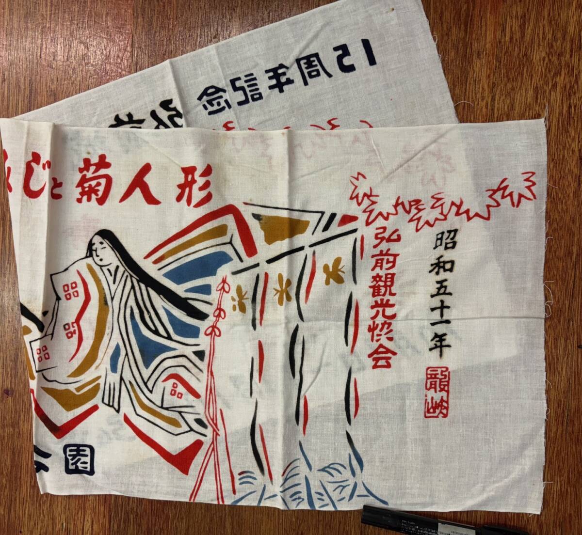 - 昔の手ぬぐい 昭和レトロ★展示品★青森 弘前★15周年記念 弘前城 もみじ菊人形★弘前観光協会★コレクションに★昭和51年