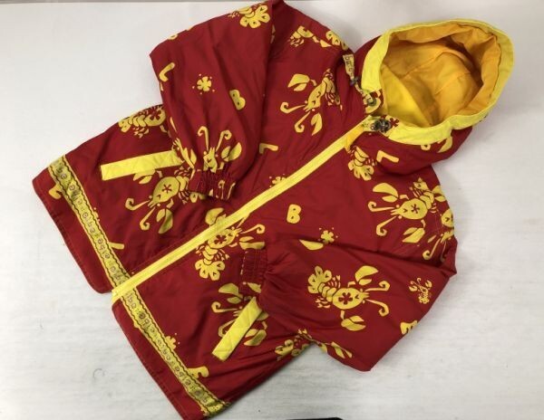 > ELBE エルベ オールド レトロ スキーウェア 海老シュリンプ総柄 中綿 スノボ スキージャケット レディース フリース裏地 日本製 M 赤系