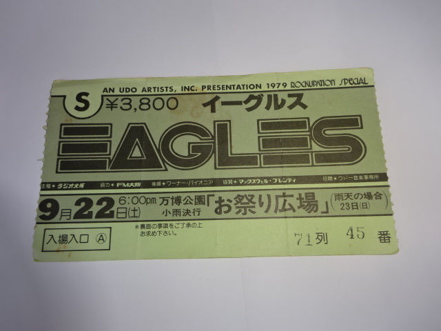 - 送料185円・小箱1■ イーグルス EAGLES 1979年 万博公園「お祭り広場」 半券 チケット