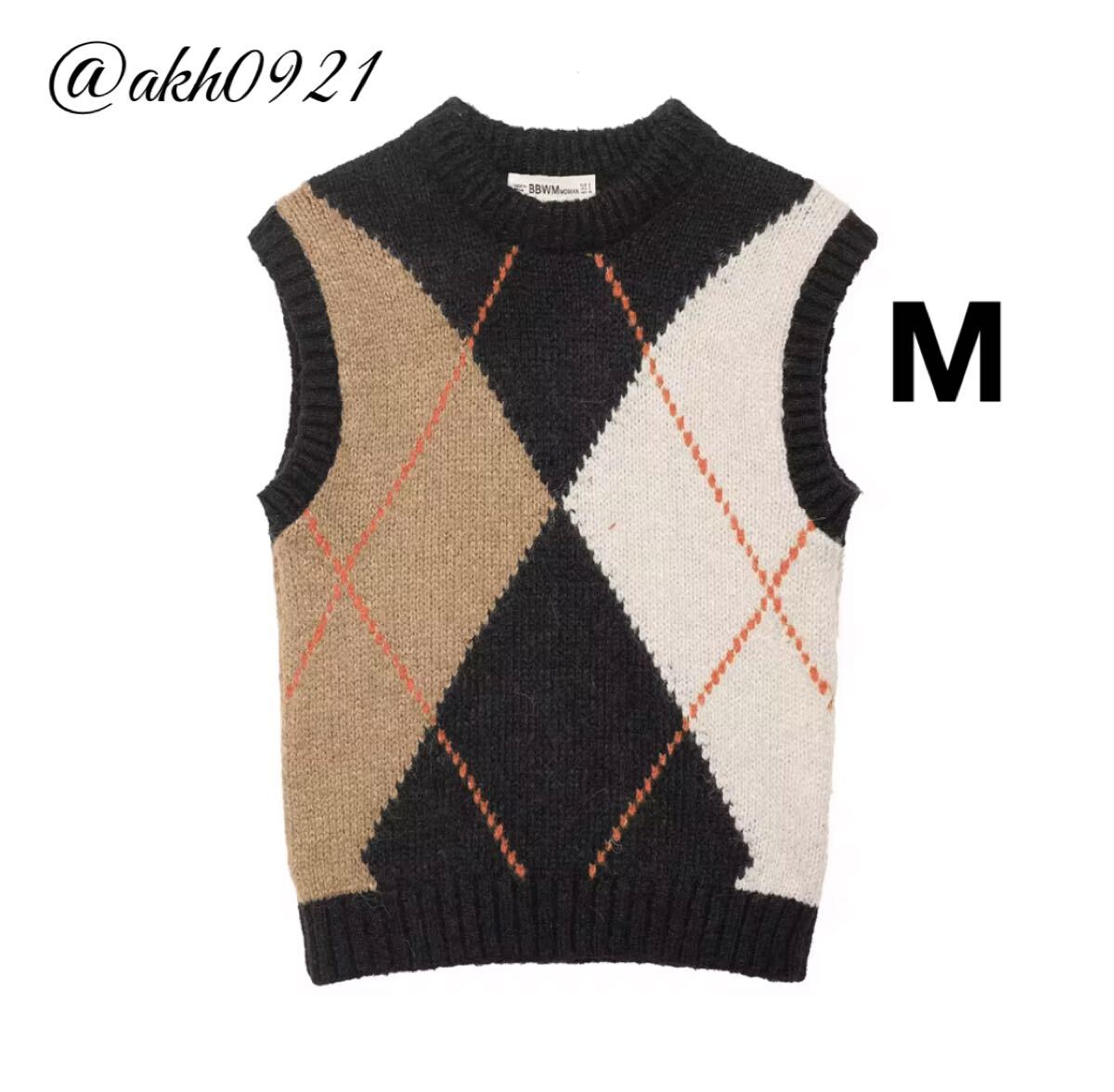 - 新品未使用★2025 A/W 秋新作★vintage ヴィンテージ レトロ アーガイル 柄 ニット ベスト トップス Mサイズ レディース★ZARA 好きな方に