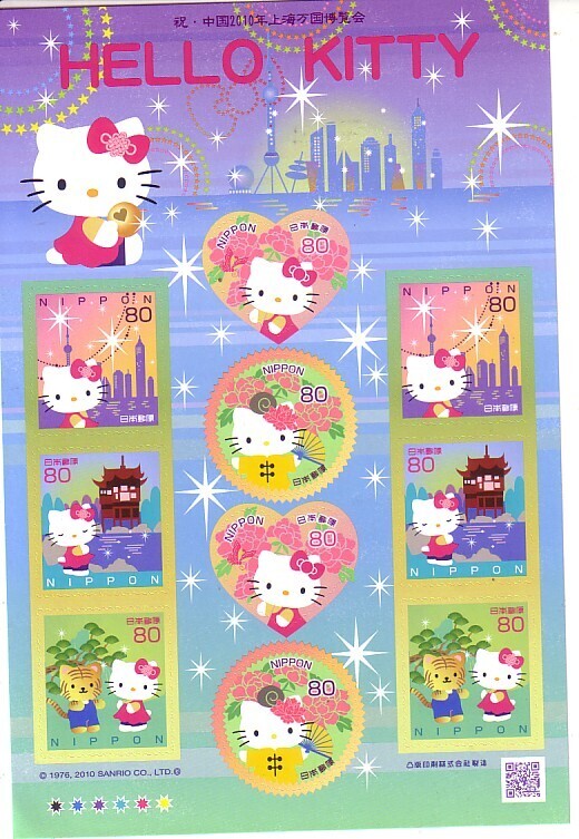 - 「ハローキティ 祝・中国2010年上海万国博覧会」の記念切手です