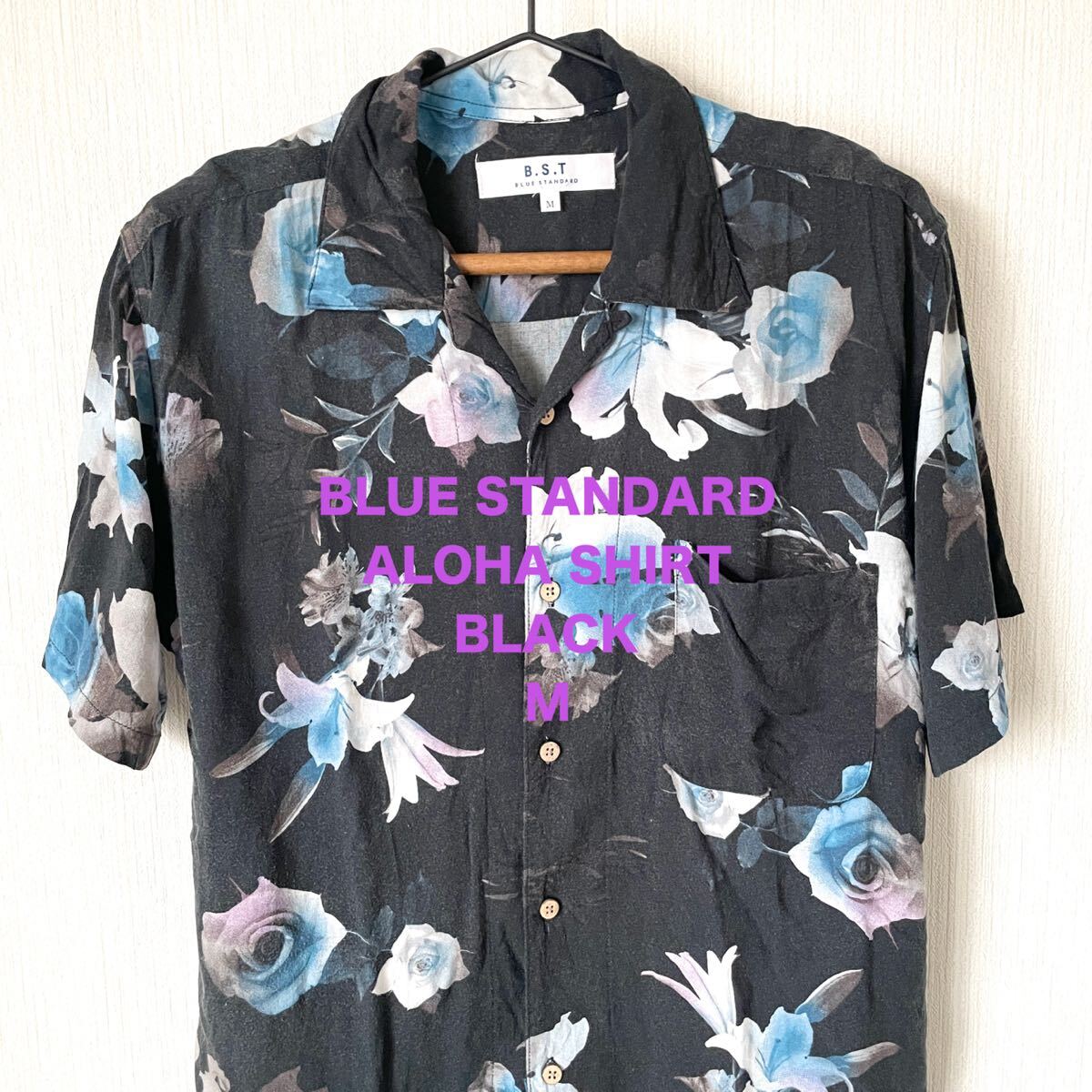 - 【アロハシャツ】ブラック M 半袖 夏服 メンズ BLUE STANDARD オープンカラー アメカジ ビンテージ古着 匿名配送
