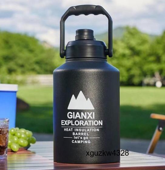 > ブラック 二重壁の真空断熱 超高品質 広口 ステンレス保温保冷氷筒 2L 氷が入れやすい キャンプやアウトドア 野外登山 14x28cm/XS11