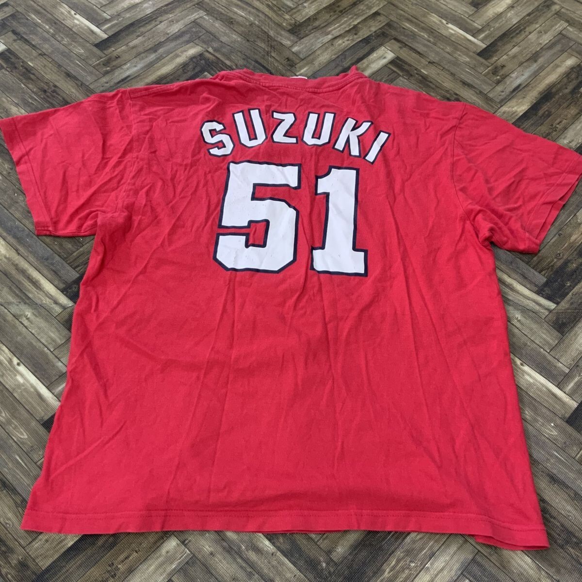 - HY1712 当時物 広島東洋カープ #51 鈴木 半袖 Tシャツ レッド L