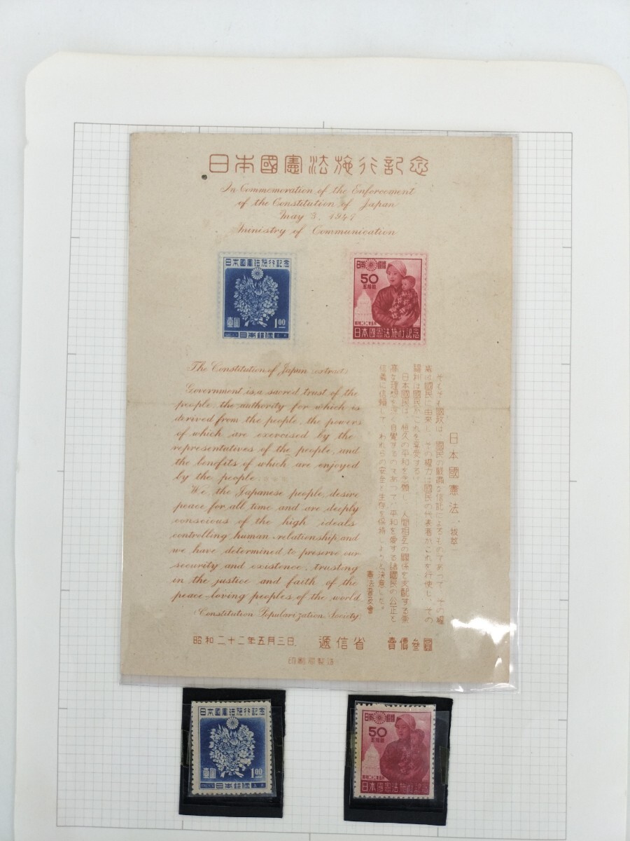 - 【25*80240】『日本国憲法施行記念切手』壱圓 50銭 1947年5月3日 印刷局製造
