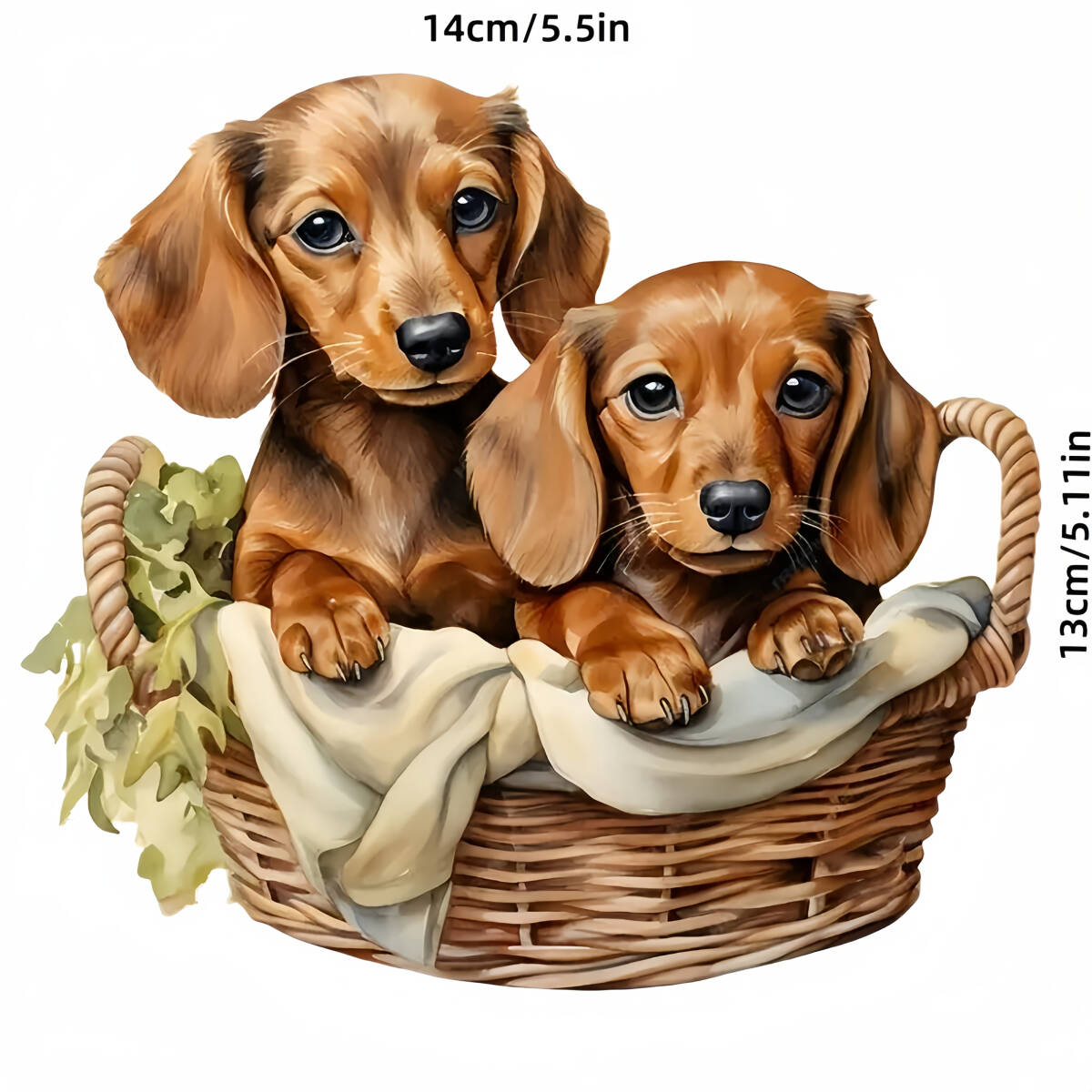 - ステッカー 2匹の子犬 ダックスフンド 茶色 イヌ 車用 シール 14cm ビニール 防水 かわいい 窓用 ノートパソコン いぬ デカール t8284