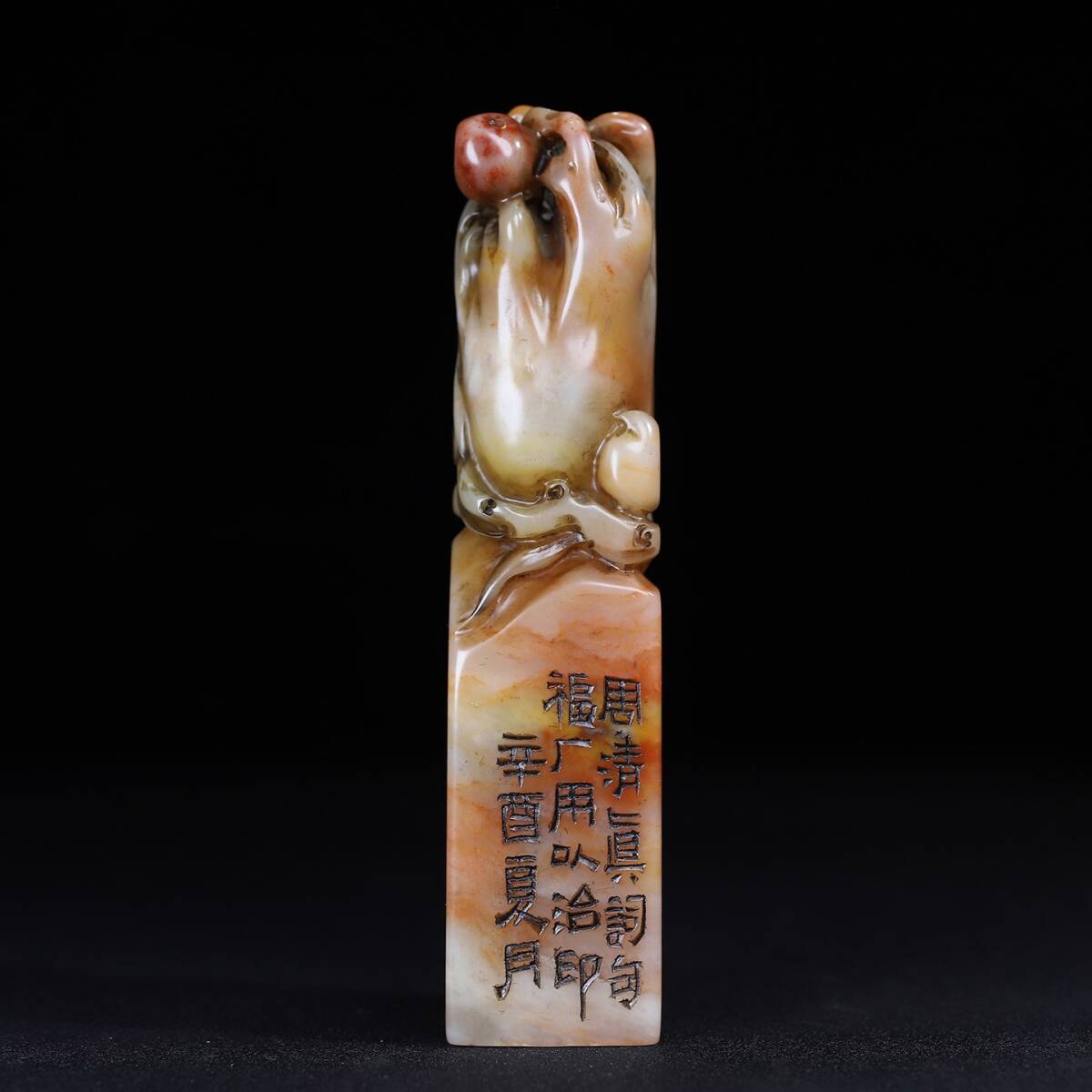 - ▽鴻▽ 寿山石 芙蓉石 細密彫 福寿綿長印章 印鑒 文房具 書道品 古賞物 古董品 時代物 稀少珍品 中国古玩 中国古美術