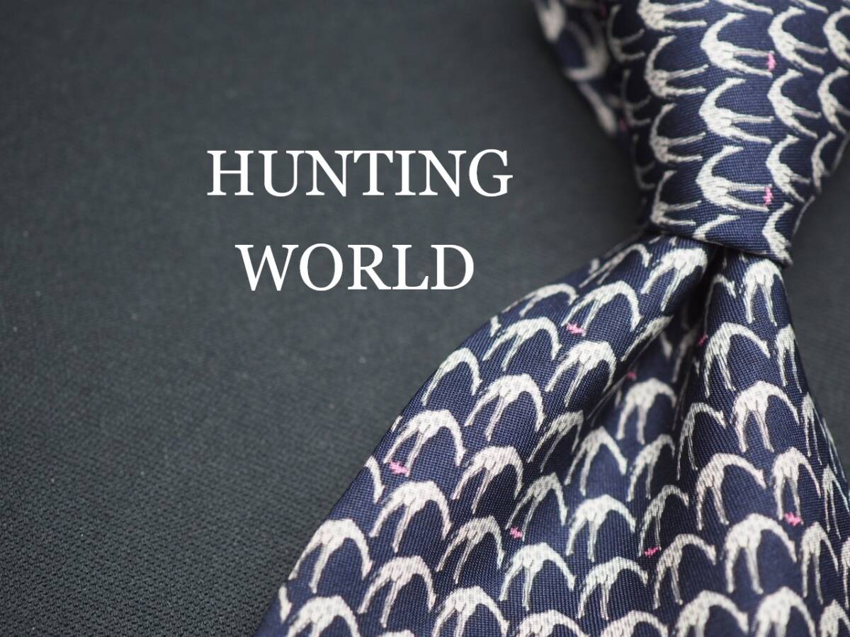 > 美品【HUNTING WORLD ハンティングワールド】 F1927 ネイビー系 SILK ブランド ネクタイ 古着 良品