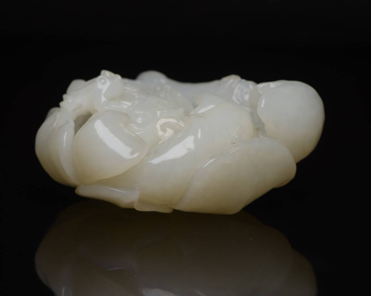 - 『館蔵珍品 和田玉製 細密彫 呱呱來財 置物 賞物』稀少珍蔵品 古賞物 貴重物品 収蔵品 中国古美術 時代物 古董品