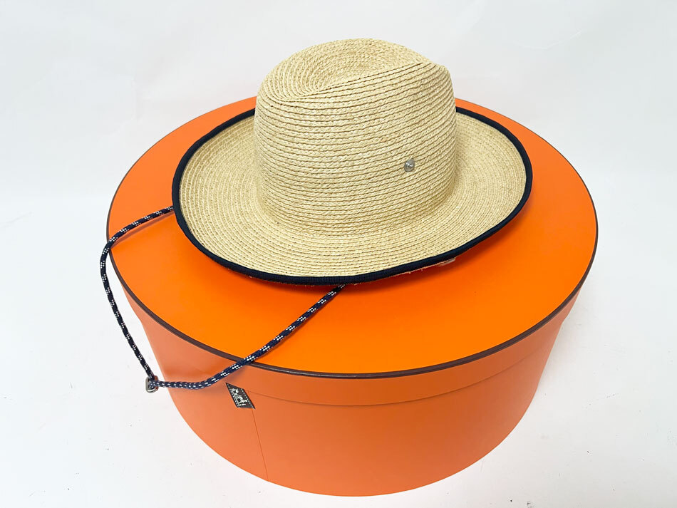 - HERMES エルメス インディアナ ハット 帽子 ラフィア レディース 57 新品同様