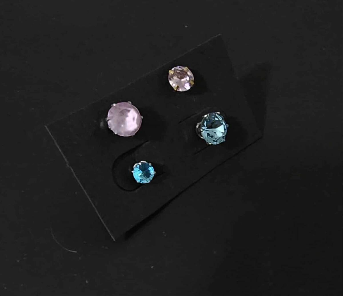 - ピンクトルマリンとブルーのアクアマリンピアス片耳4個セット新品未使用品