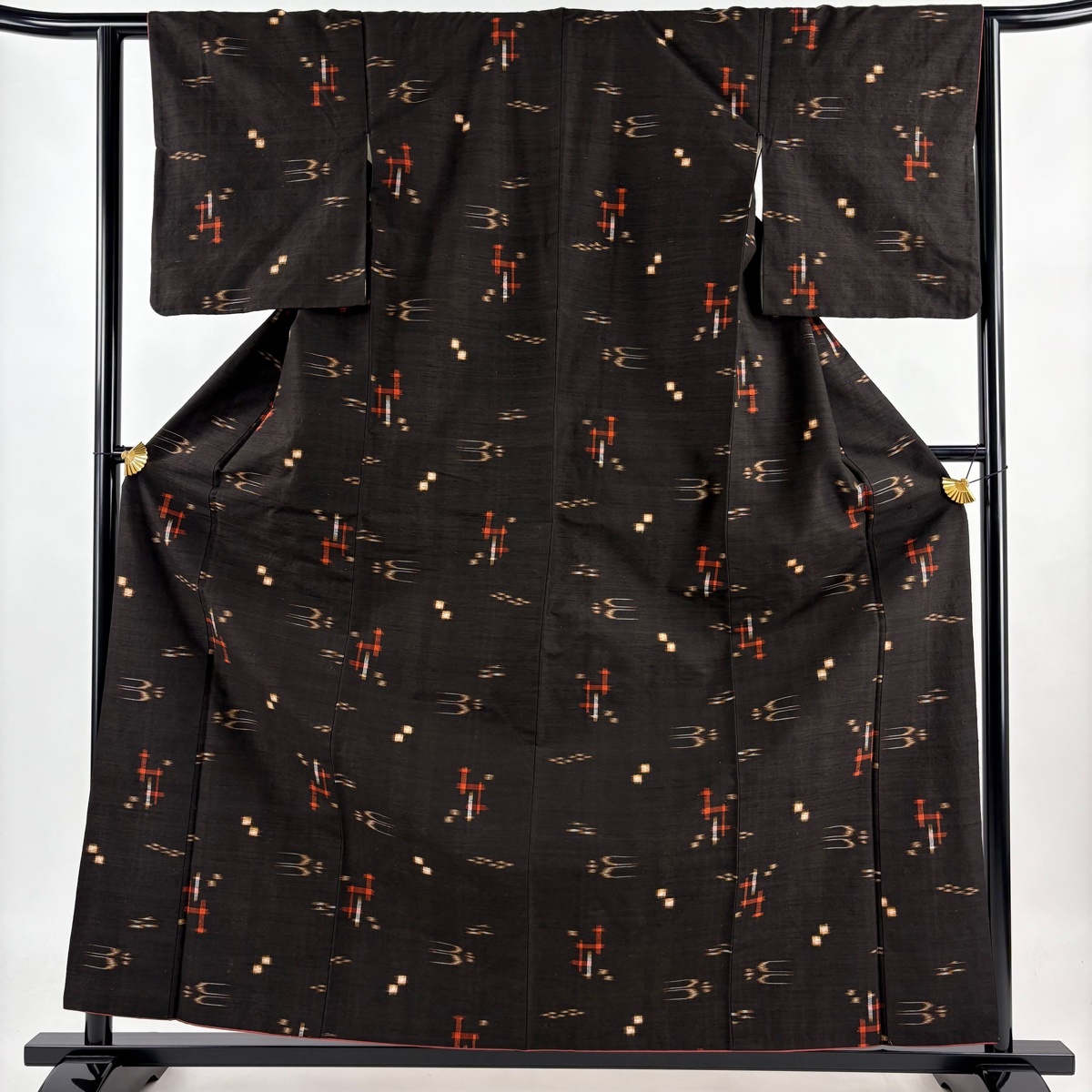 - 紬 身丈160cm 裄丈62cm S 袷 絣 燕 焦茶色 正絹 秀品 【中古】