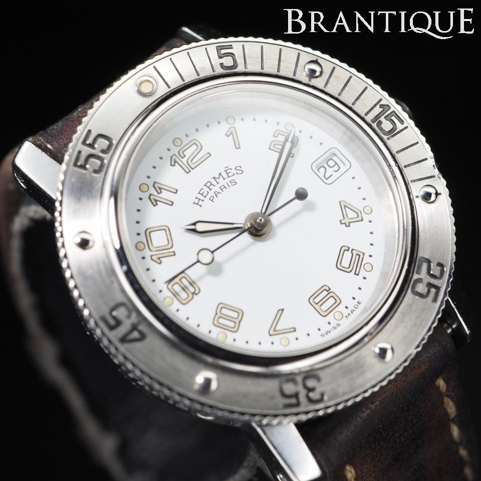 - ◆即決あり◆ HERMES エルメス CL5.210 クリッパー 回転ベゼル SS/革 QZ 電池交換済み USED 稼働 ダイバー レディース 「27498」