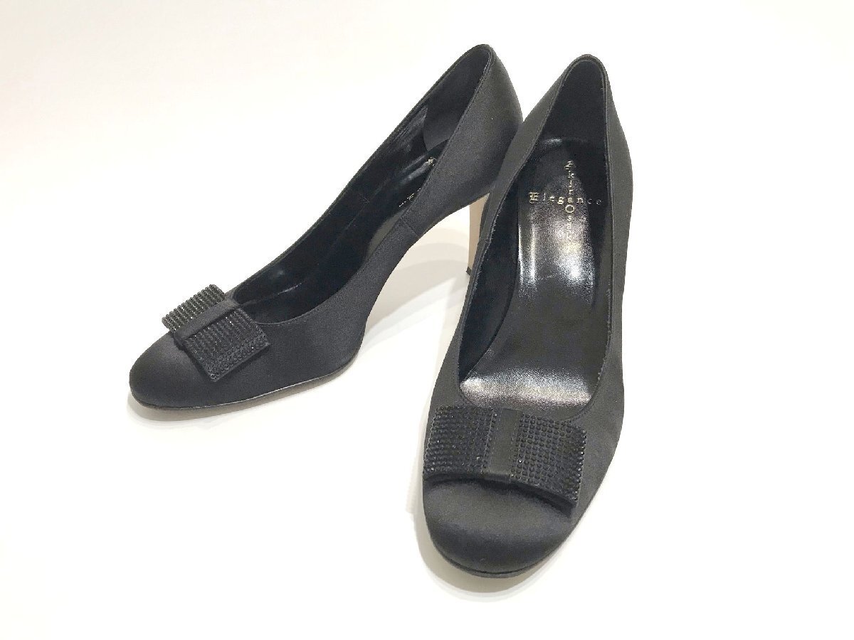 > ■【YS-1】 アキラ オーサキ エレガンス パンプス ■ リボン付き ブラック 黒 ■ 24cm ヒール高8cm【同梱可能商品】■D