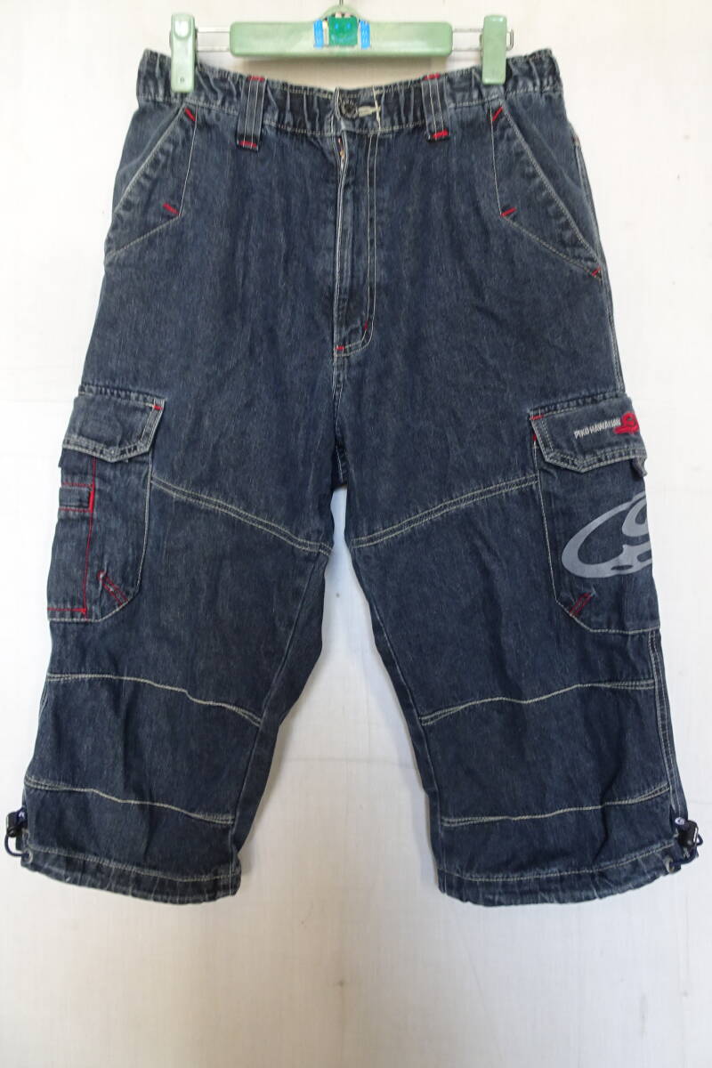 - PIKO/ピコ/デニムハーフパンツ/カーゴパンツ/ひざ丈/ジップフライ/ウエストゴム/裾ドローコード/インディゴブルー/Mサイズ(9/1R7)