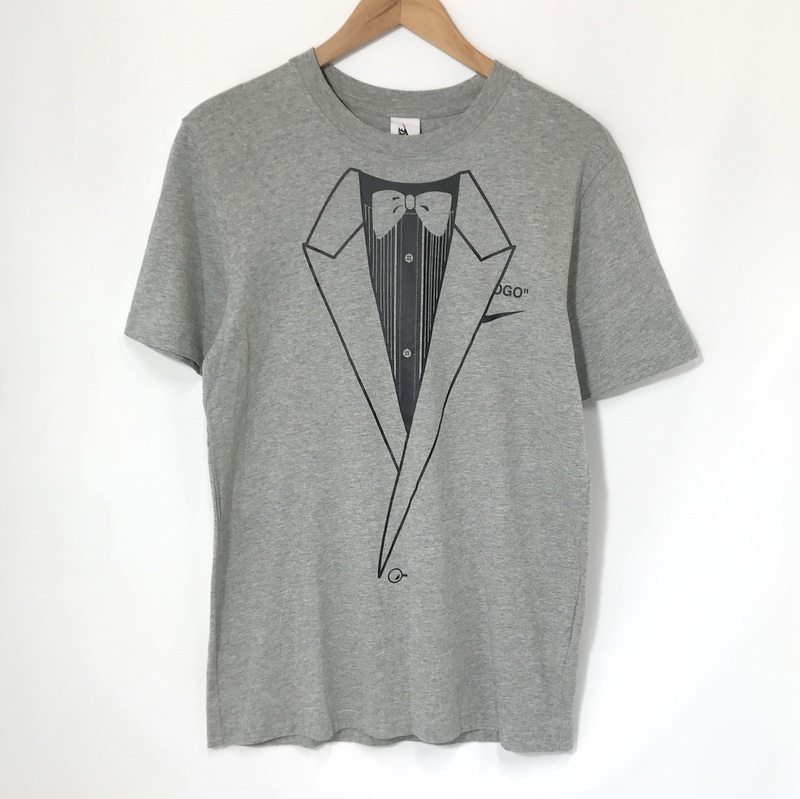 > NIKE×OFF WHITE Tシャツ BQ0827-063 半袖 カットソー タキシードデザイン プリント カジュアル 古着 Sサイズ ナイキ トップス A13723◆